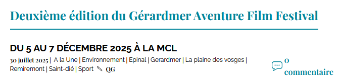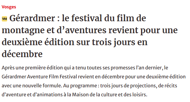 Espace Presse Dossier de presse DOSSIER DE PRESSE 2025 Communiqués de presse COMMUNIQUÉ DE PRESSE GAFF GERARDMER 2025 29-07-2025 Le GAFF dans la presse